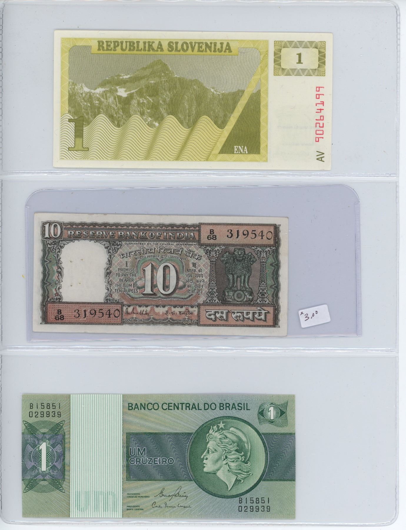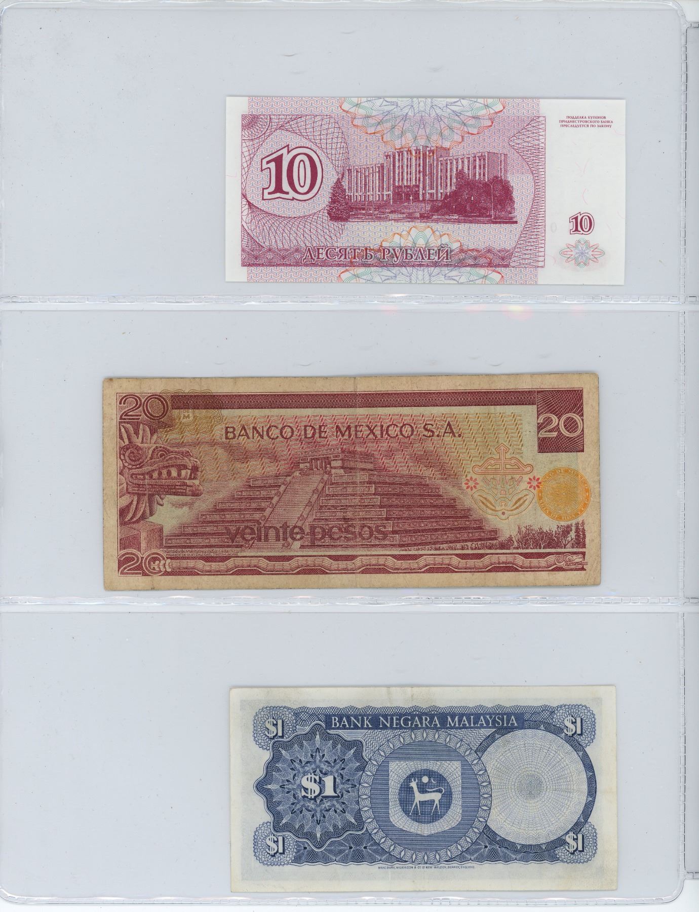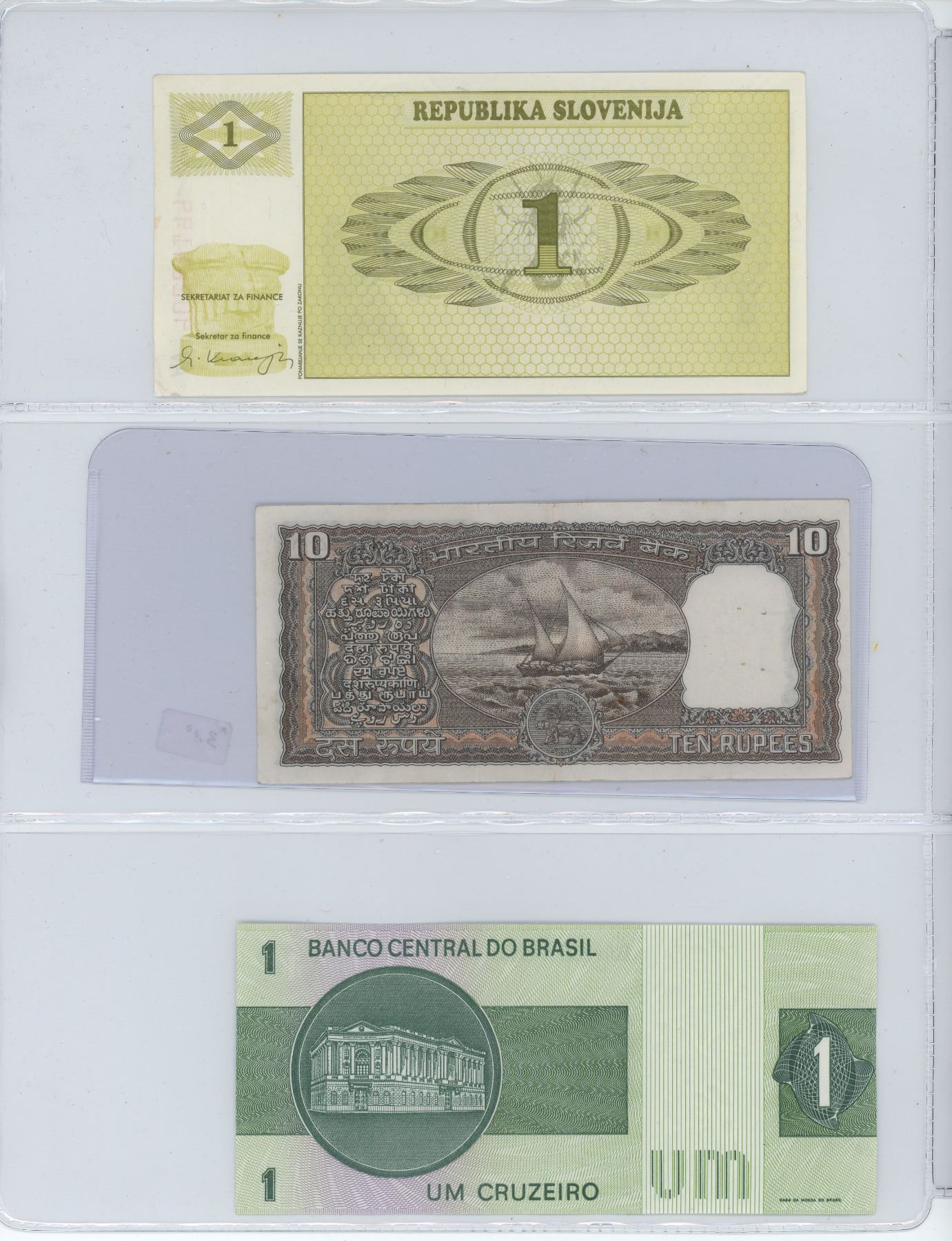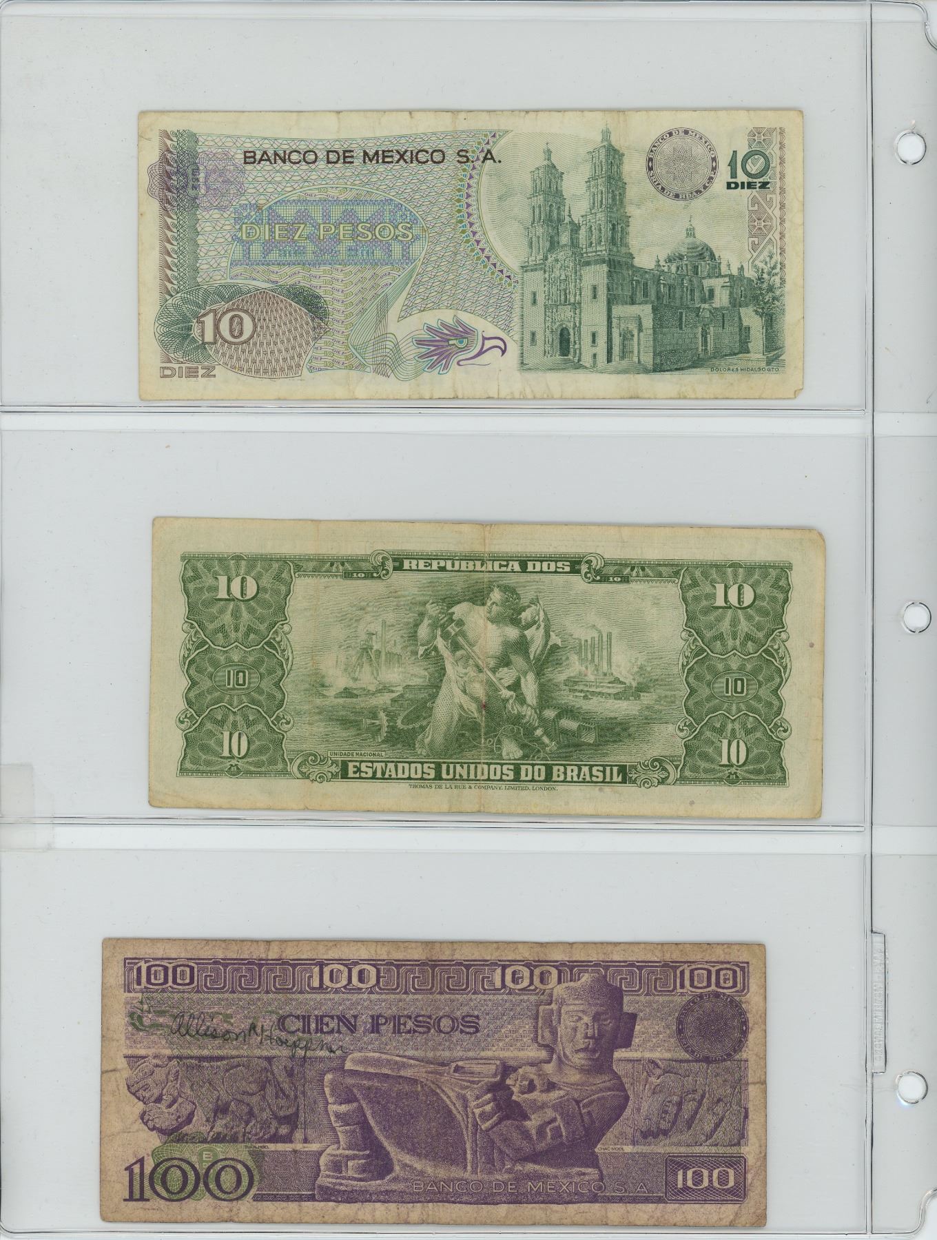 Binder of World Notes: 35 bills (approx. 16 countries incl. Guyana, Angola, Bahrain, Egypt, Nigeria