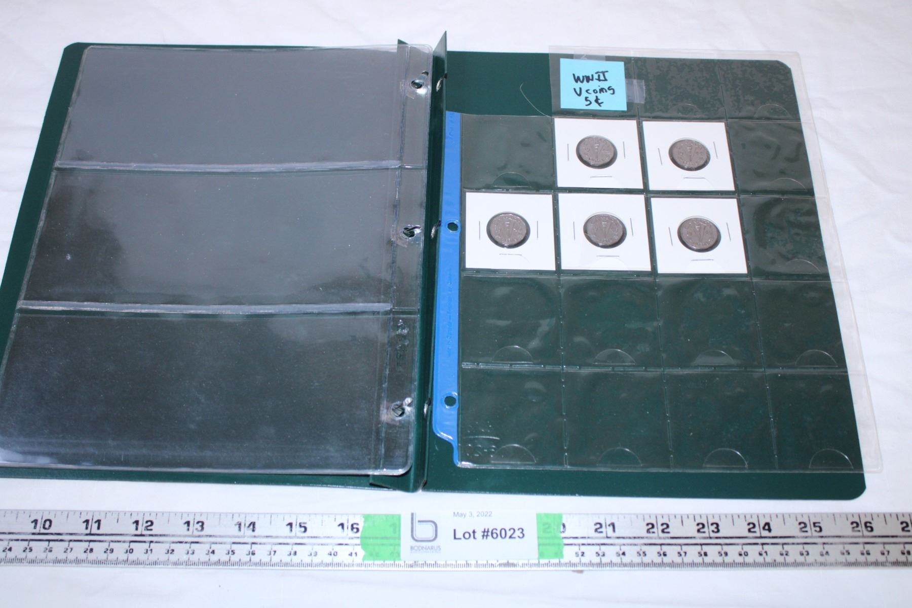 Binder with 1945 5-cent (WWII V coins) + bill sleeves