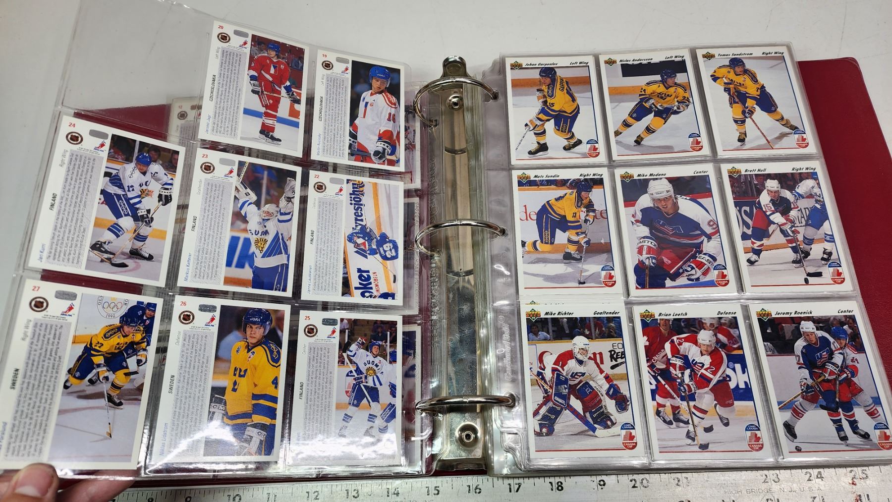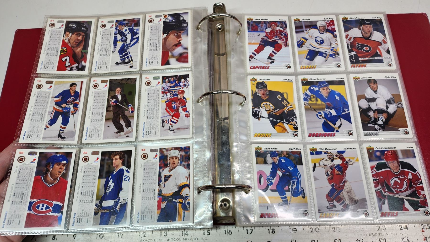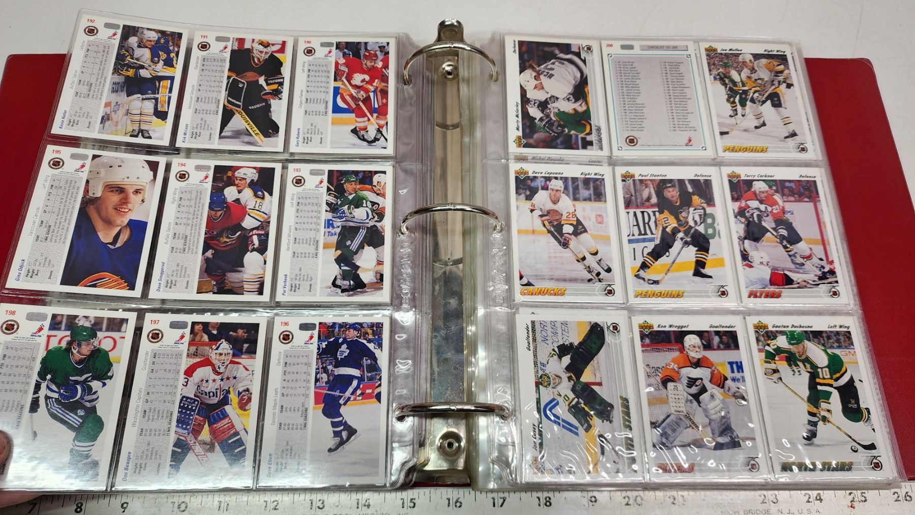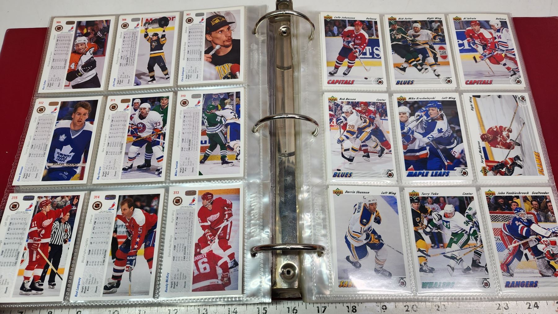 Binder with 55 sheets of Upper Deck 1991 NHL cards - assorted, not all slots full