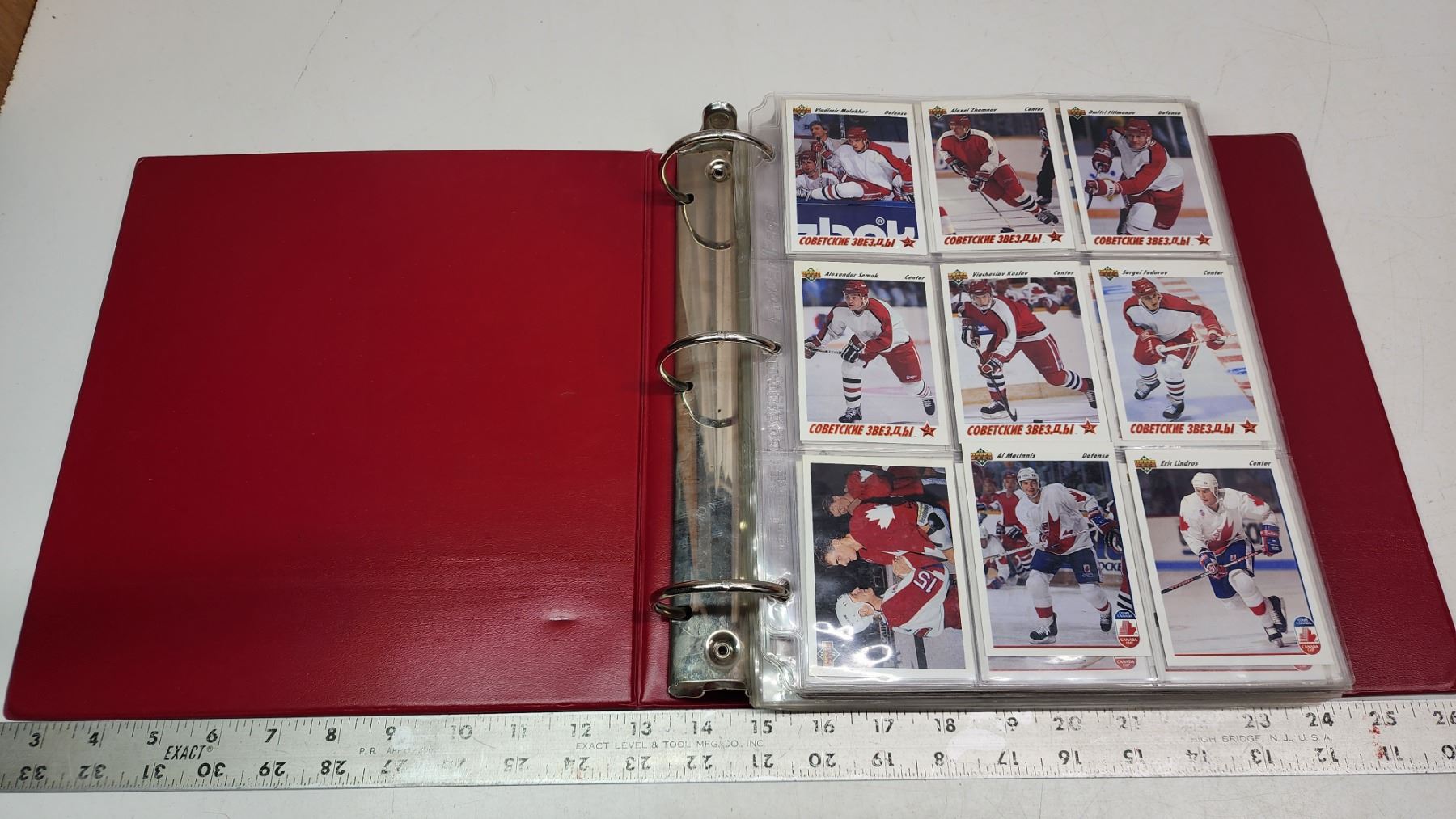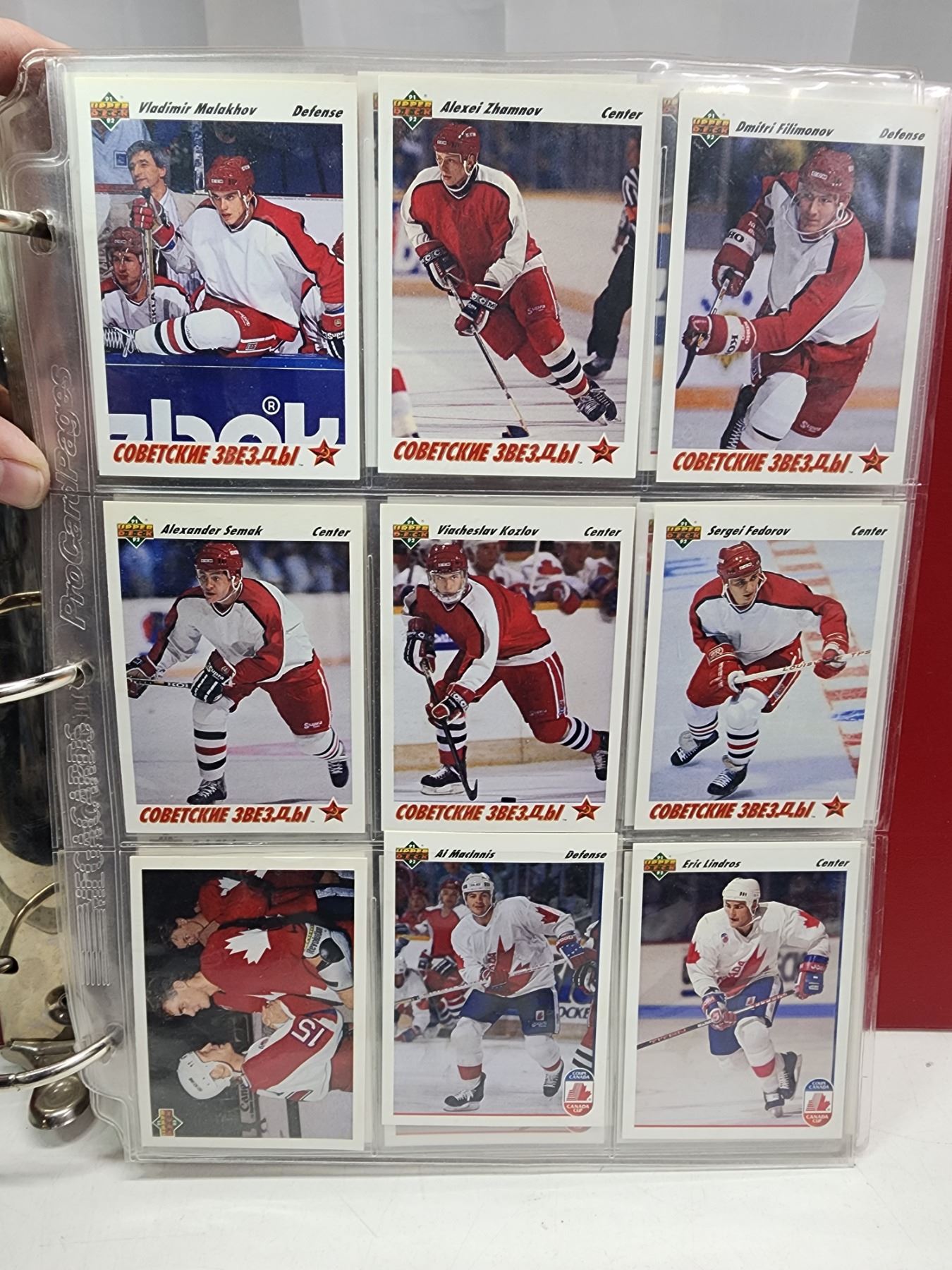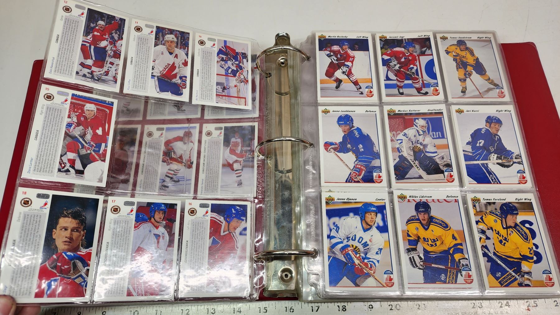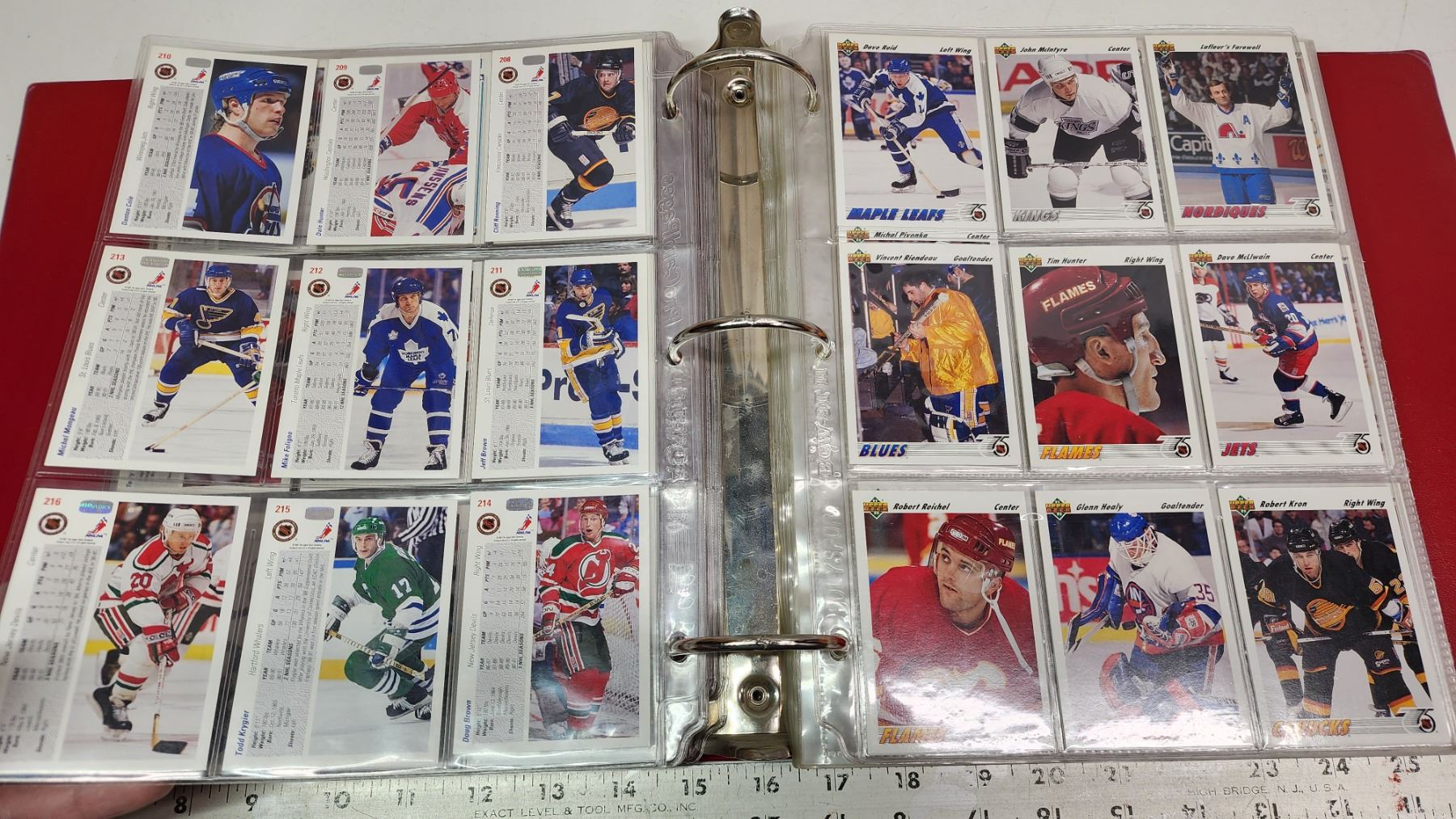 Binder with 55 sheets of Upper Deck 1991 NHL cards - assorted, not all slots full