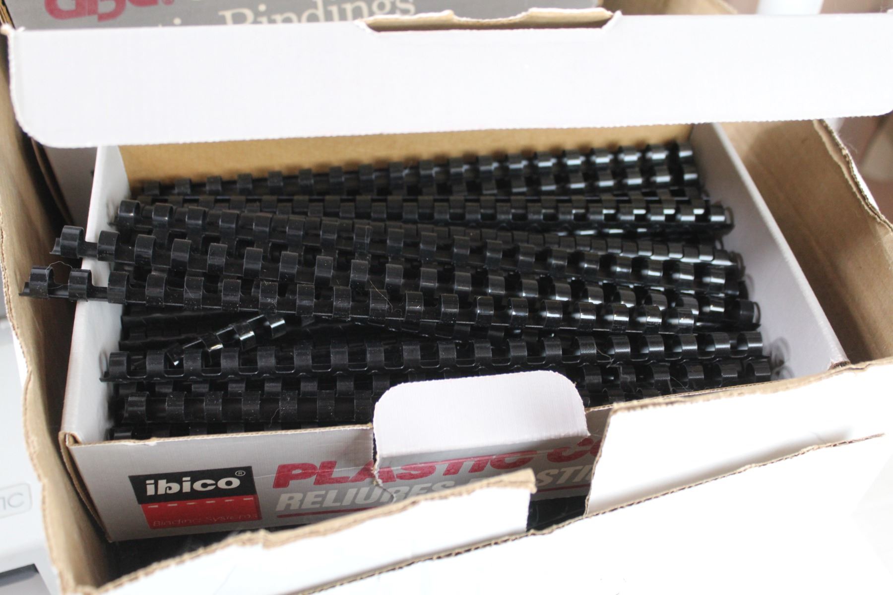 Binding Booklet Machine w/ 9 Boxes of Plastic Coils, Film Solvent Carbon Sheets, Metal Clips