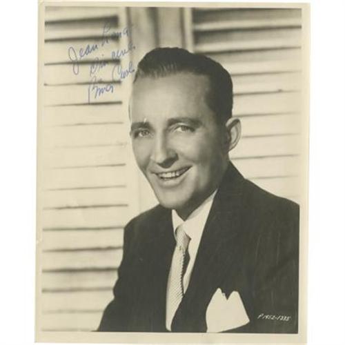 <B>Bing Crosby Signed Photo.</B></I> A b&w 8" x 10" photo of the legendary crooner, inscribed and signed by him in blue ink. In Very Fine condition.<BR><BR><b>Shipping:</b> Flat Material, Small (<a target="_blank" href="http://www.heritageauctions.com/common/shipping.php">view shipping information</a>)