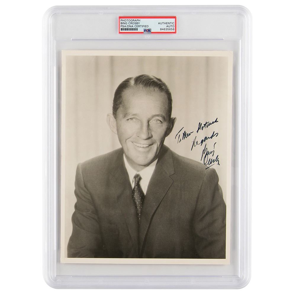 Matte-finish 8 x 10 photo of the influential entertainer in a pleasant front-facing pose, signed and inscribed in black felt tip, "Regards, Bing Crosby." In fine condition. Encapsulated in a PSA/DNA authentication holder.