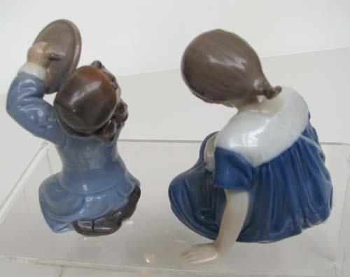 Description: Bing & Grondahl porcelain figure of a girl with doll 1526 and Royal Copenhagen girl with cymbal 3677
