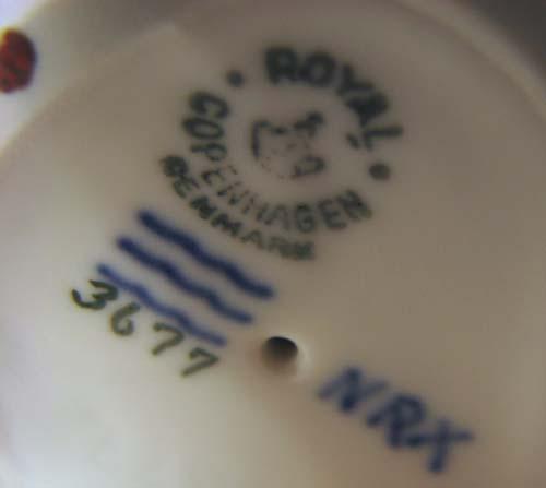 Signature: stamped on bottom royal copenhagen, Denmark, 3677, NRX and Made in Denmark, B & G 1526