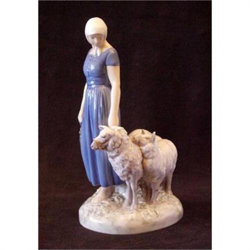 </font></strong>Beautiful Bing and Grondahl porcelain figurine of a shepherdess with three sheep. It is signed on the base by Axel Locher (1879-1941), a Bing & Grondahl artist. Please ask questions, request additional photos and shipping costs before buying.