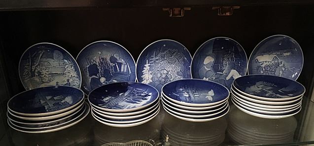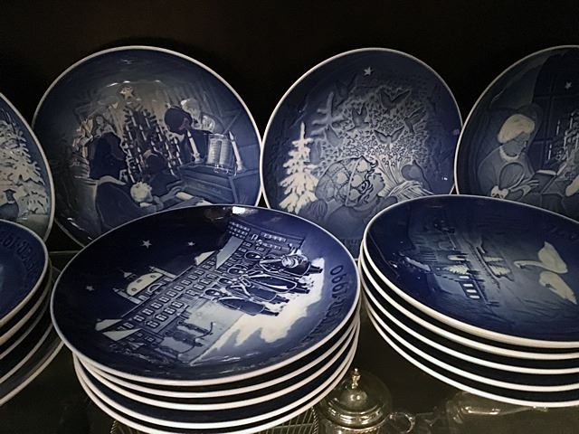 Bing and Grondahl blue plate collection, approx. 26 plates total, plates dated 1970s - 1990 including Christmas scenes.