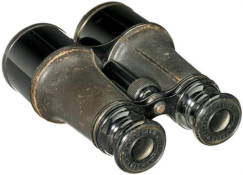 Binocular "Chevalier Opticien Paris" Black-lacquered brass, leather-covered tube, with engraving "Day & Night" on inner tube, total length 7 4/5 in., with leather bag.<Br>