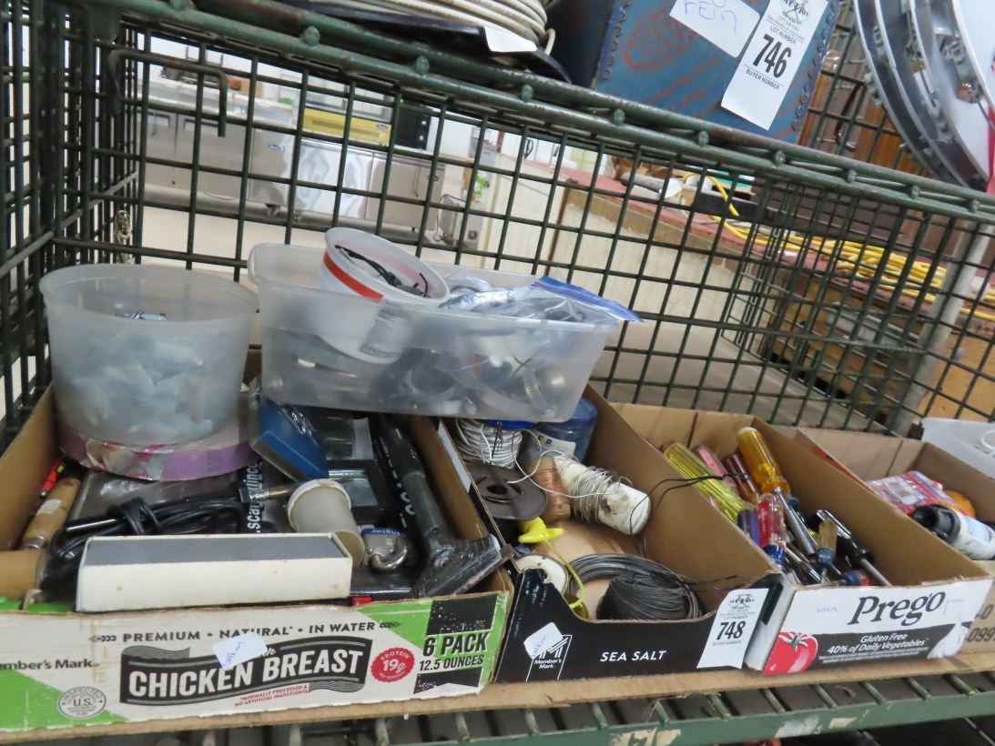 Bins w/Hand Tools, Hardware, Wire, Supplies