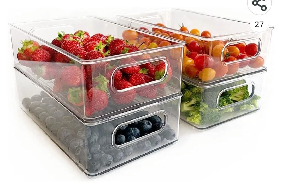 Clear Plastic Blicedax Storage Bins, 4PC Set, Stackable Fridge Bins With Handles, Easy to Clean, Great For Organizing