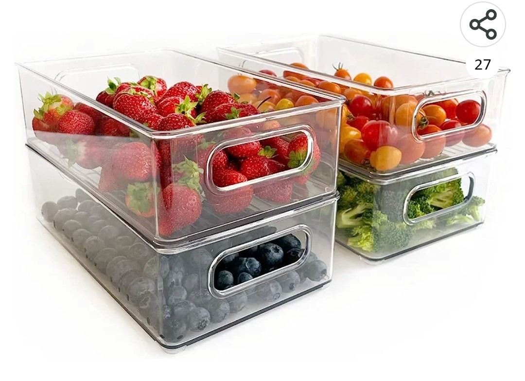 Clear Plastic Blicedax Storage Bins, 4PC Set, Stackable Fridge Bins With Handles, Easy to Clean, Great For Organizing