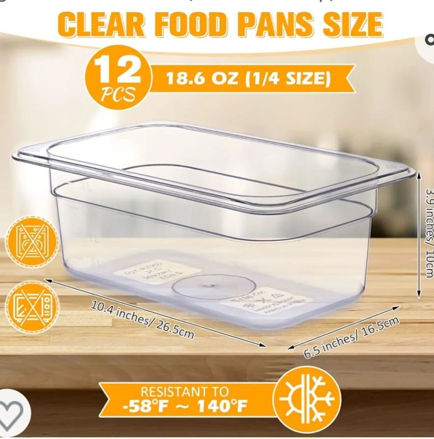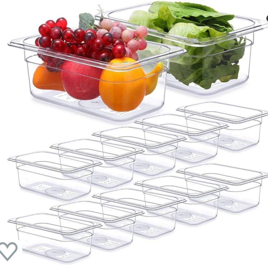 Hoolerry 12 Packs Plastic Food Pan 1/4 Size Commercial Food Storage Containers, Clear, Stackable, for Fruits, Vegetables, Beans, Corns, (2.9 Inches Deep) New