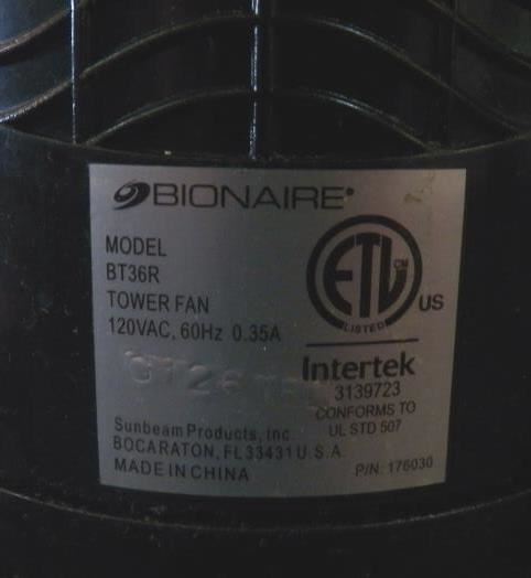 Bionaire BT36R-BU 36" Tower Fan