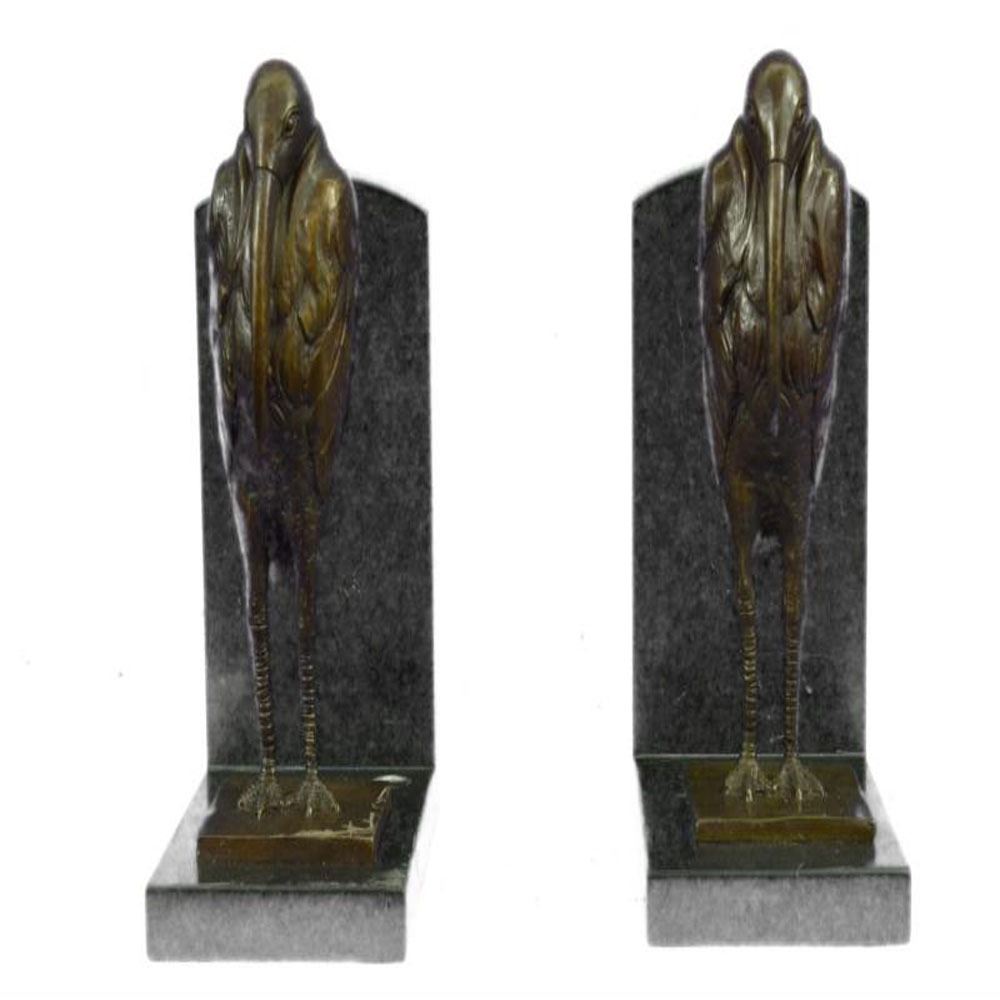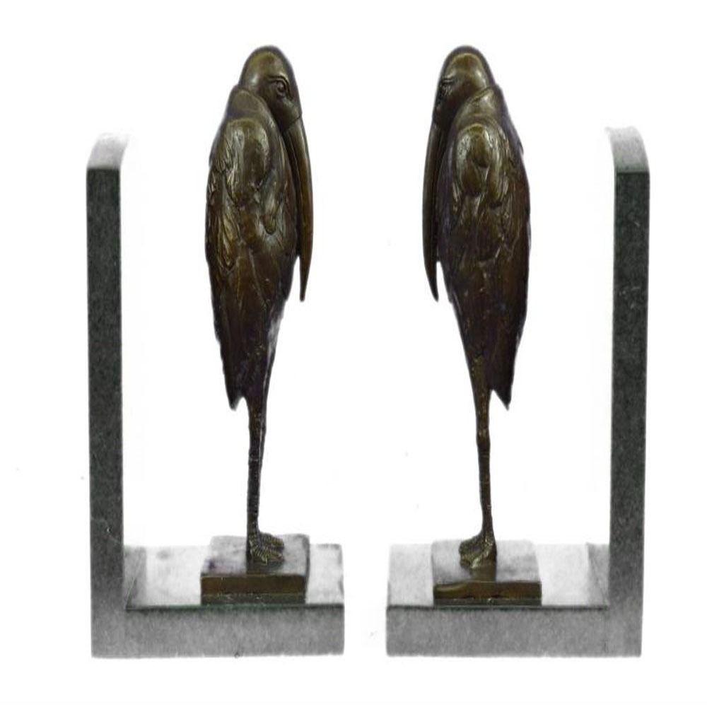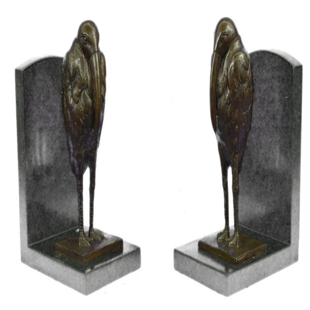 The Pelican Bookends feature two pelicans with all the little details. The pair offers a simple and tranquil appeal often associated with the seaside. A nice addition to a den, an office, study, or home decor. This Sculpture was cast using the Lost Wax Method and mounted on a marble base. Bronze Dimensions with Marble Base: Height 9 X Width 6 inches. Weight: 12 LBS.