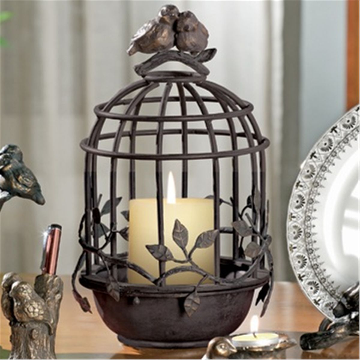 Bird Cage Candle Holder - 12"H 7"W 7"D - Aluminum