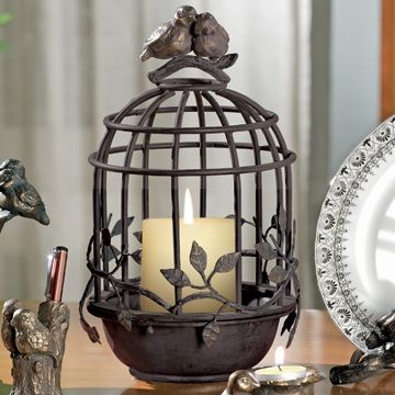 Bird Cage Candle Holder - 12"H 7"W 7"D - Aluminum