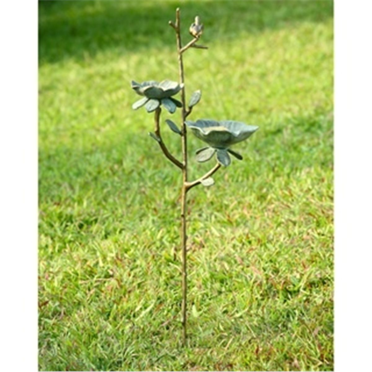Bird & Flowers Bird Feeder On Stake - 39.5"H 13.5"W 8.5"D - Aluminum