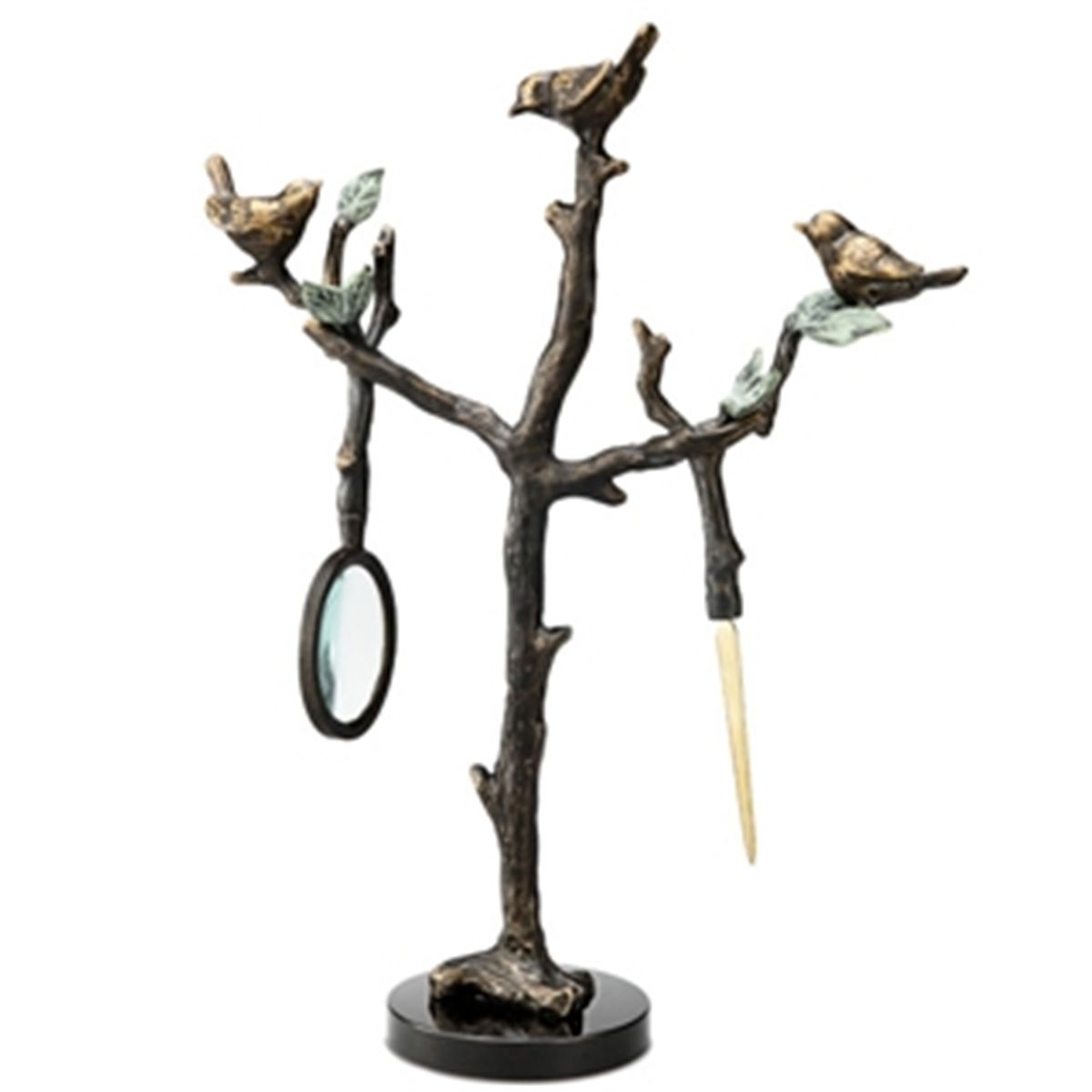 Bird In Tree Desk Set - Magnifier & Letter Opener - 18"H 14"W 5"D - Aluminum & Glass On Marble Base