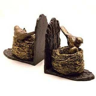 Bird & Nest Bookends - 6"x5.5"x3" -- Bronze Resin & Iron