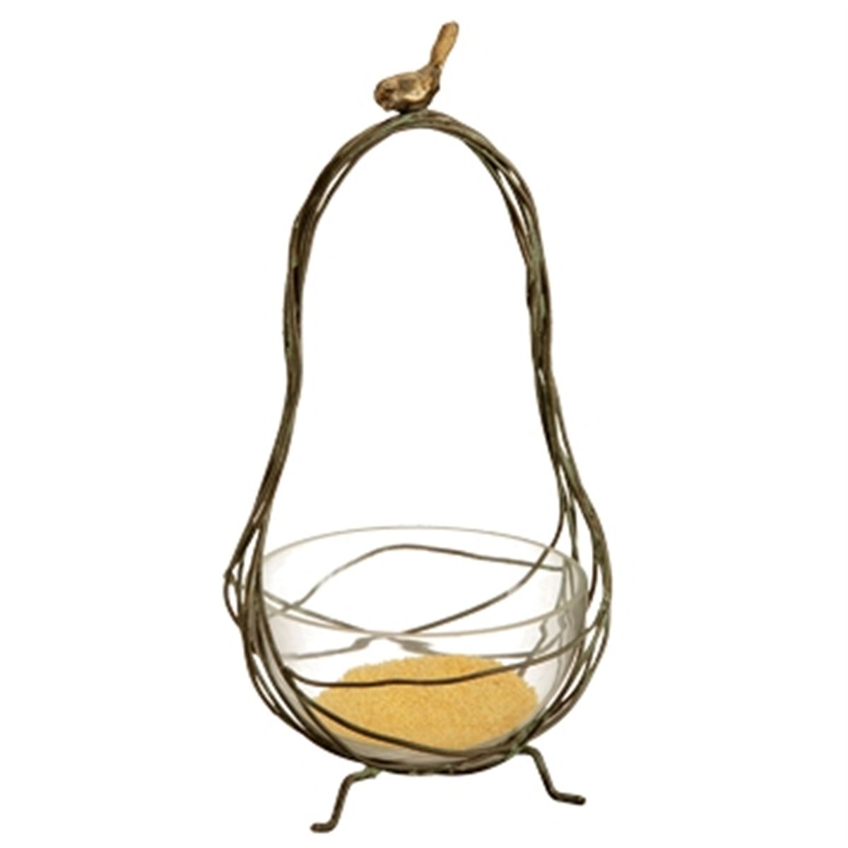 Bird Nest Bowl - 12.5"H 6.5"W 6"D - Aluminum & Glass