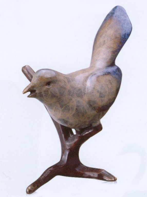 Bird On Branch Bronze Sculpture - 5.5"H 5"W 3.5 "D - Great Attention To Detail - Beautiful Finish - Lost Wax Cast