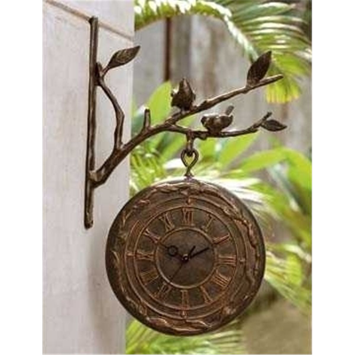 Bird On Branch Clock & Thermometer - 21.5"H X 14.5"W X 3.5"D - Aluminum - Clock On One Face With Thermometer On The Other