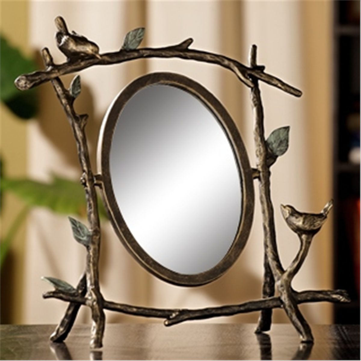 Bird On Branch Mirror - 15"H 15"W 8"D - Aluminum & Glass