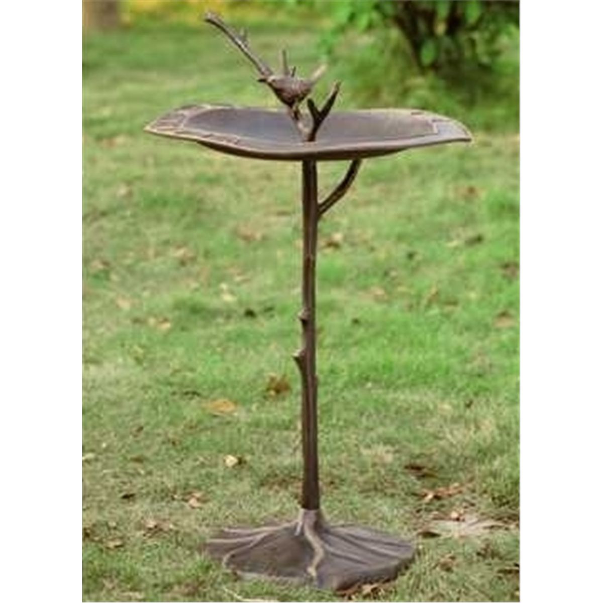 Bird On Branch Sundial Birdbath - 26.5"H X 16"W X 16"D - Aluminum Bird Bath