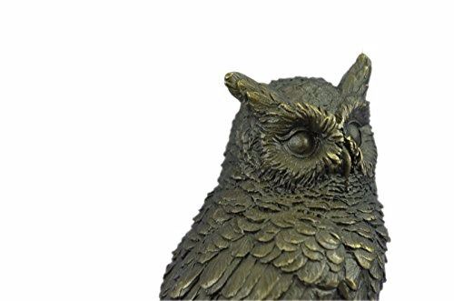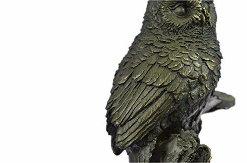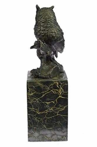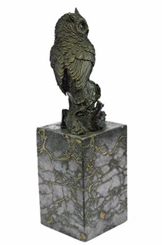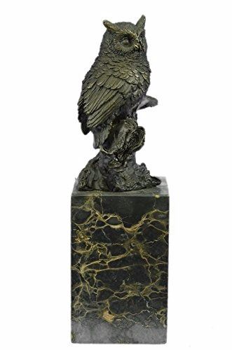 A Quaint Owl Rests Upon His Perch, Looking Out Into The Night Sky. His Innate Ability To Listen Keeps Him Occupied As He Listens To The Sounds Of The Night, Waiting To Hear The Scurry Of A Mouse So That He Can Swoop Down For A Midnight Snack. His Eyes Are Large And His Body Refined By The Intricate Feathers That Outline His Form, Each One Visible From The Next As They Cascade Downwards. Sculpture Is Hand Made Using The Lost Wax Method And Made Of 100% Bronze. A Two Toned Brown Patina Is Used And He Rests On A Solid Black Marble Base. Bronze dimensions with marble base: Height 11 X Width 3 inches. Weight: 8 lbs.