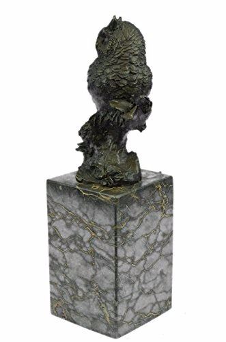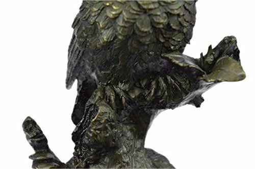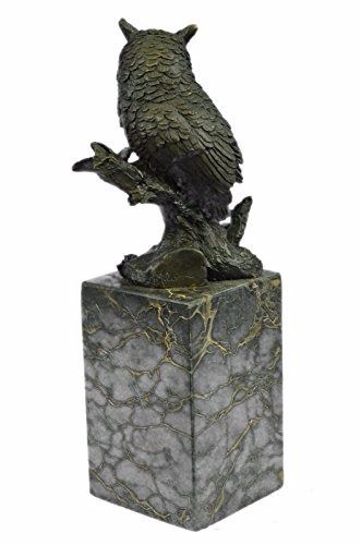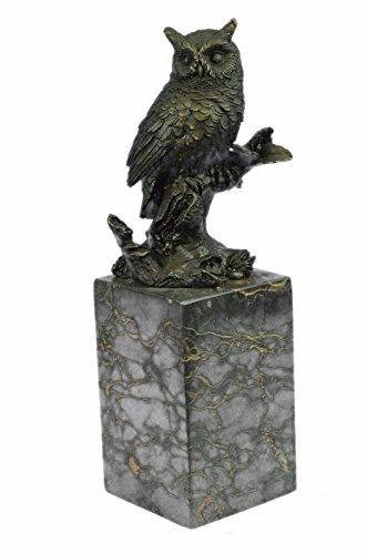 A Quaint Owl Rests Upon His Perch, Looking Out Into The Night Sky. His Innate Ability To Listen Keeps Him Occupied As He Listens To The Sounds Of The Night, Waiting To Hear The Scurry Of A Mouse So That He Can Swoop Down For A Midnight Snack. His Eyes Are Large And His Body Refined By The Intricate Feathers That Outline His Form, Each One Visible From The Next As They Cascade Downwards. Sculpture Is Hand Made Using The Lost Wax Method And Made Of 100% Bronze. A Two Toned Brown Patina Is Used And He Rests On A Solid Black Marble Base. Bronze dimensions with marble base: Height 11 X Width 3 inches. Weight: 8 lbs.