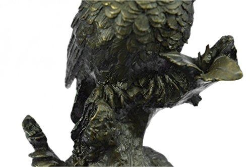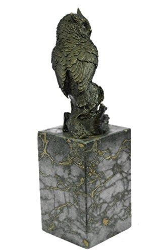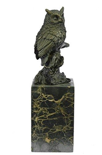 A Quaint Owl Rests Upon His Perch, Looking Out Into The Night Sky. His Innate Ability To Listen Keeps Him Occupied As He Listens To The Sounds Of The Night, Waiting To Hear The Scurry Of A Mouse So That He Can Swoop Down For A Midnight Snack. His Eyes Are Large And His Body Refined By The Intricate Feathers That Outline His Form, Each One Visible From The Next As They Cascade Downwards. Sculpture Is Hand Made Using The Lost Wax Method And Made Of 100% Bronze. A Two Toned Brown Patina Is Used And He Rests On A Solid Black Marble Base. Bronze dimensions with marble base: Height 11 X Width 3 inches. Weight: 8 lbs.Please Note: This is a reproduction bronze sculpture from the original molded and signed. This featured bronze sculpture is a recast after the original, and has been done recently. This 100% bronze sculpture is an abstract piece certain to be a conversation piece.Please Note: This is a reproduction bronze sculpture from the original molded and signed. This featured bronze sculpture is a recast after the original, and has been done recently. This 100% bronze sculpture is an abstract piece certain to be a conversation piece.