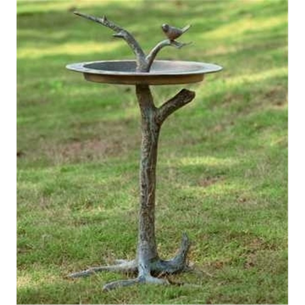 Bird & Twig Sundial Birdbath - 27"H X 15.5"W X 15.5"D - Aluminum Bird Bath