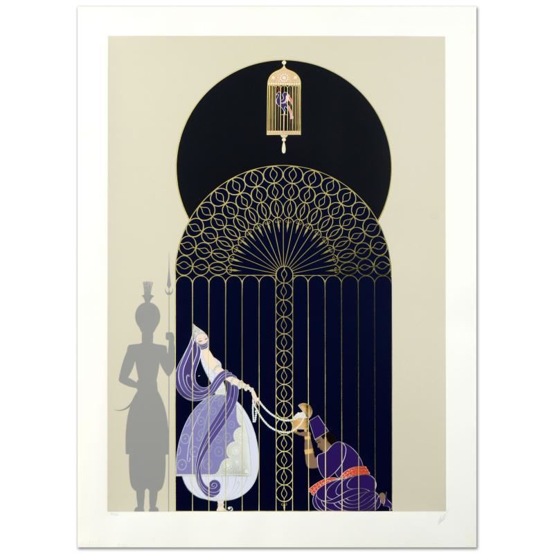 "Bird in a Gilded Cage" is a limited edition serigraph on paper, numbered and hand signed by the artist. Includes Certificate of Authenticity! Measures approx. 25.5" x 35.5" (with border), 30" x 41" (image). ** Please note: Due to the age of this piece and the delicate nature of the paper it may have some slight imperfections. **