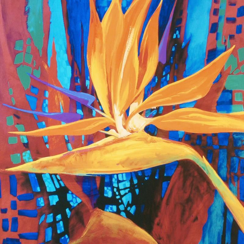 Simon Bull depicts gleaming flowers with bold hues and delicate details, creating graceful and elegant pieces of art. "Bird of Paradise" is a limited edition giclee on canvas, numbered and bearing Bull's authorized signature. This piece is gallery wrapped and ready to hang. Includes Certificate of Authenticity! Measures approx. 33" x 33" x 1.5" (image).