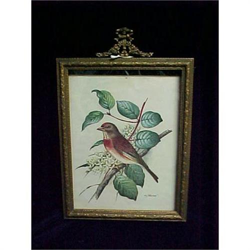 Bird on Branch - Vintage Framed Print - Beautiful! Signed, 'Ph.Gonner', see 2nd photograph. Overall measurement of approx. 10.5 x 16 inches.