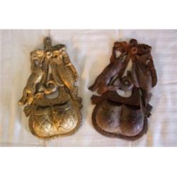 Pair of bird and rabbit motif cast match holders, 9" high, one painted