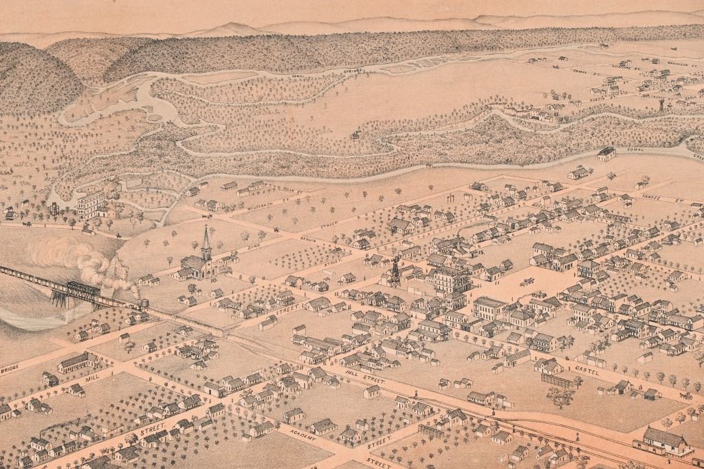 Original printing circa 1881. Measures 22" x 30". Frame measures 24 1/2" x 32 1/2". Print has some damage.