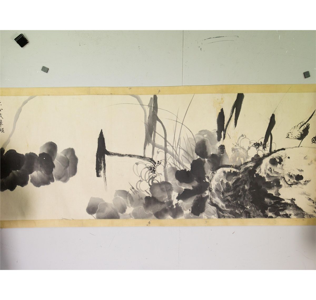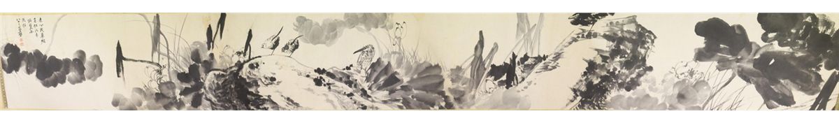 Birds and flowers; Chinese ink on paper; hanging scroll; signed Zhang Daqian (1899-1983) and inscribed with two artist seals; 460 cm x 51 cm