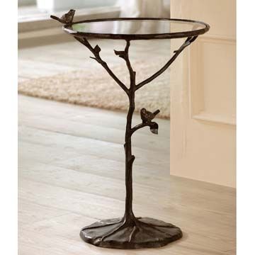 Birds In Branches Side Table - 25"H 18"W 17"D - Aluminum & Glass