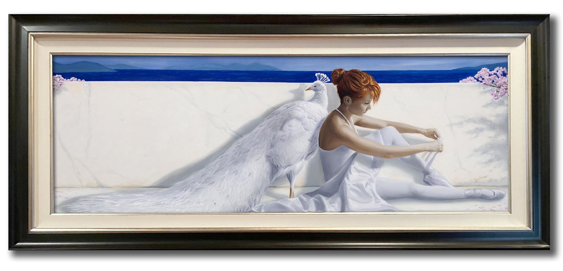 This magnificent Showpiece reminds us of the strangely sexual "Women and Bird" couplings of the great Rennaissance artists. A 48x16" image , it will look stunningly beautiful in a classic black moulding.