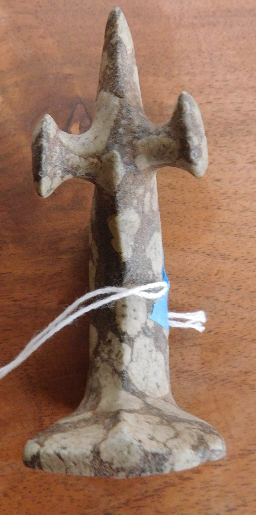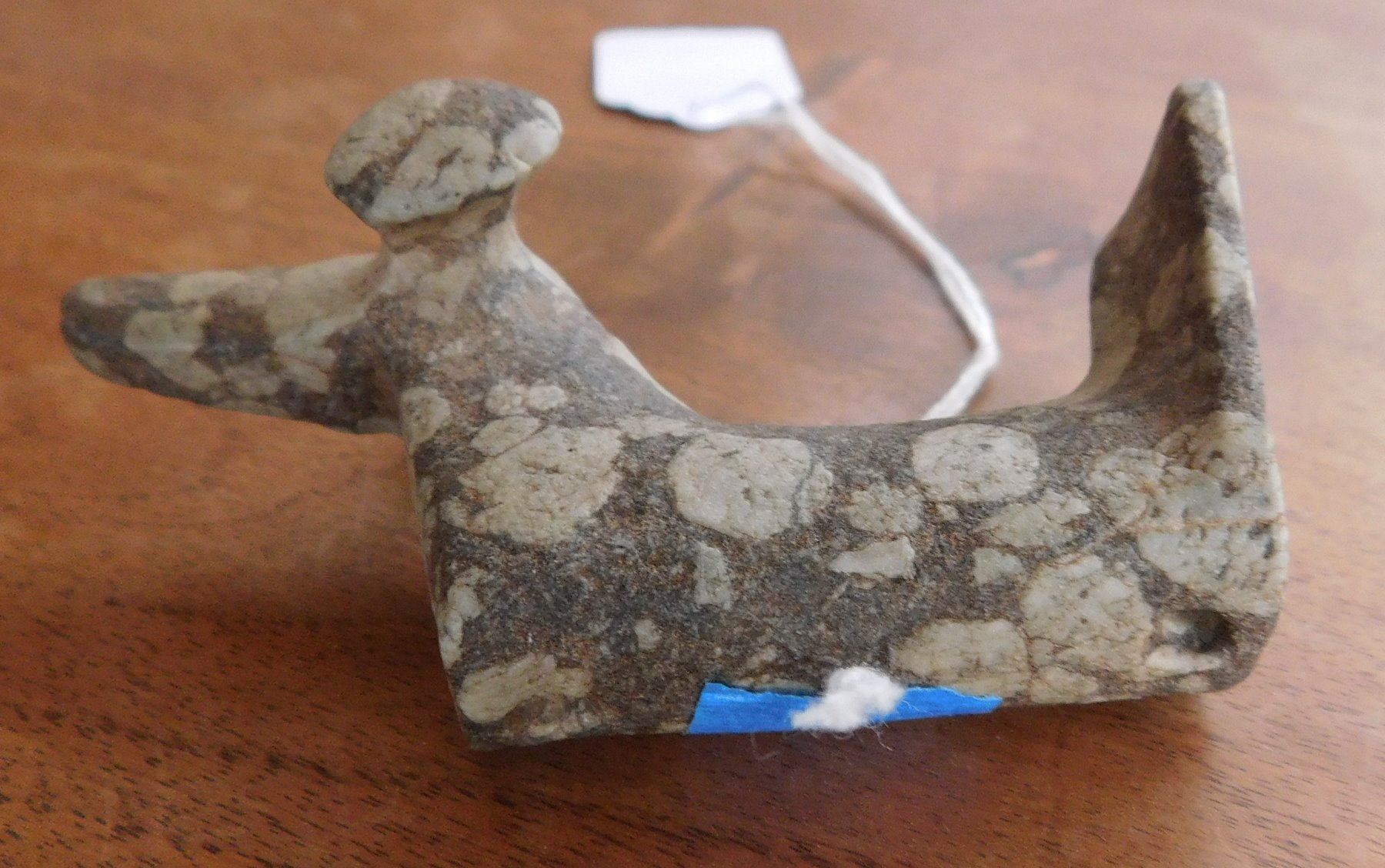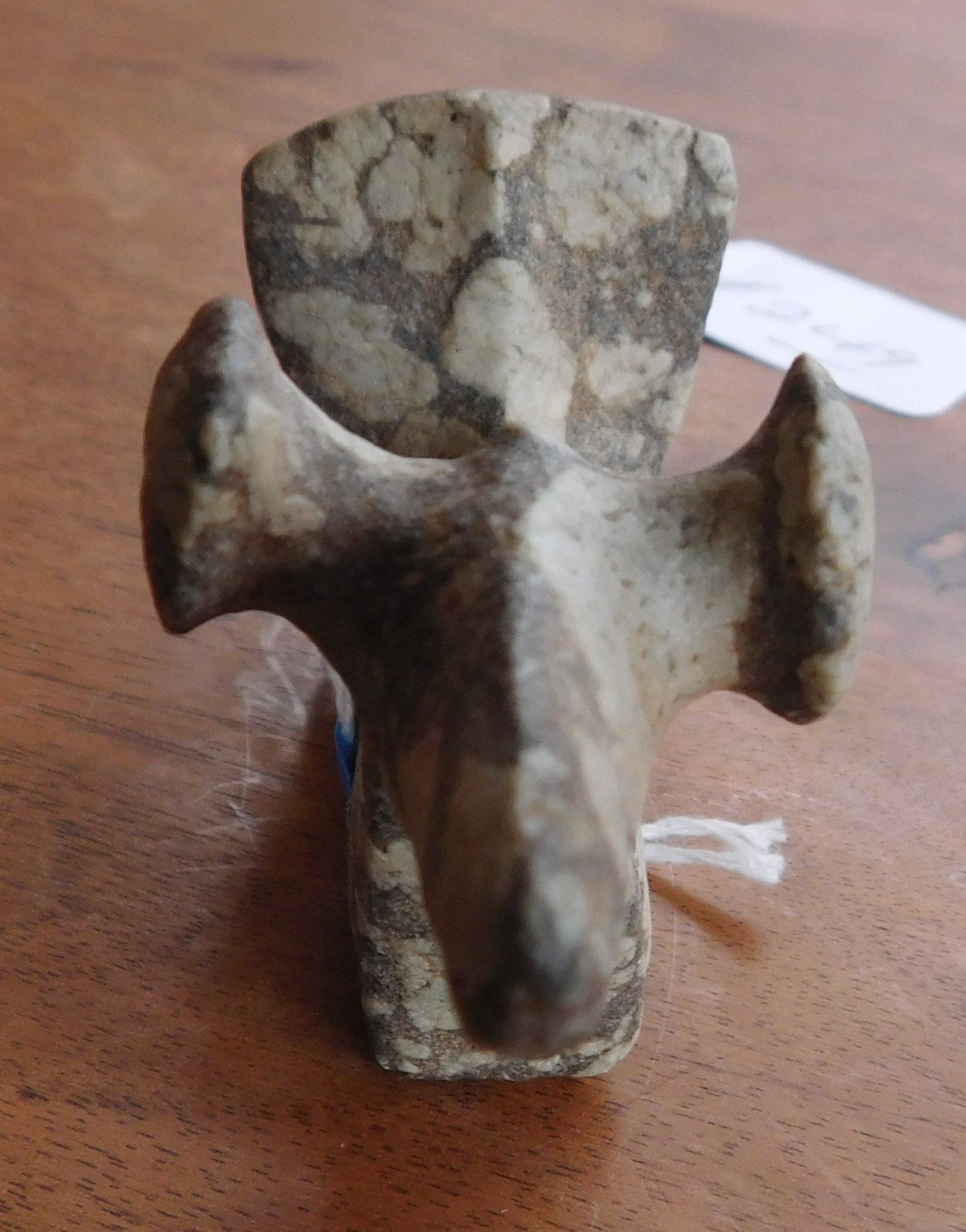 Birdstone, pre-historic item. Made of granite porphyry, the item measures 3 1/4" x 1 3/8" x 1 1/2". Ashe County, North Carolina. From an old, 1960s California collection. Condition: Good, minor wear, see images. Shipping: $16.50 w/insurance and signature, due to value.