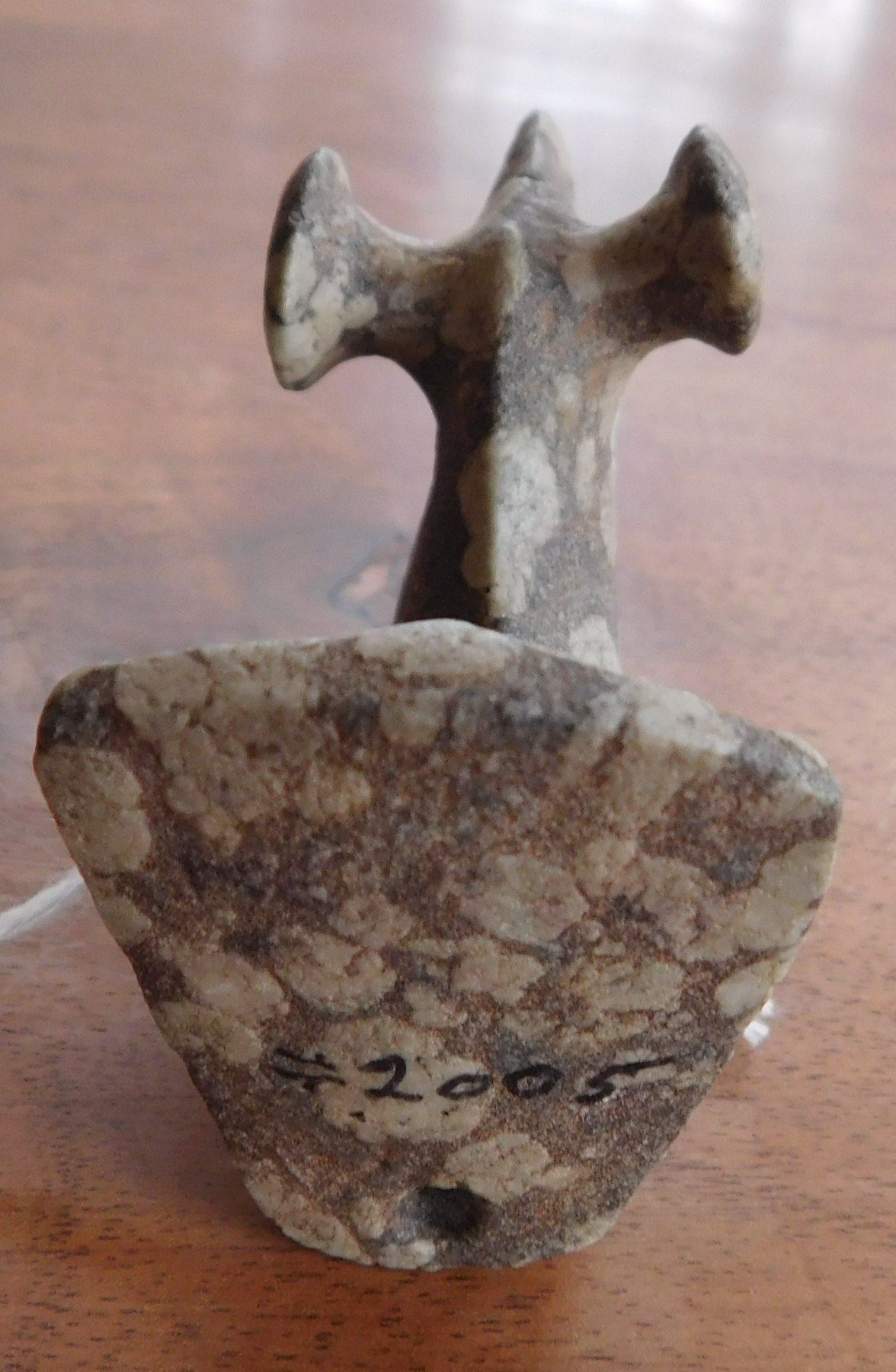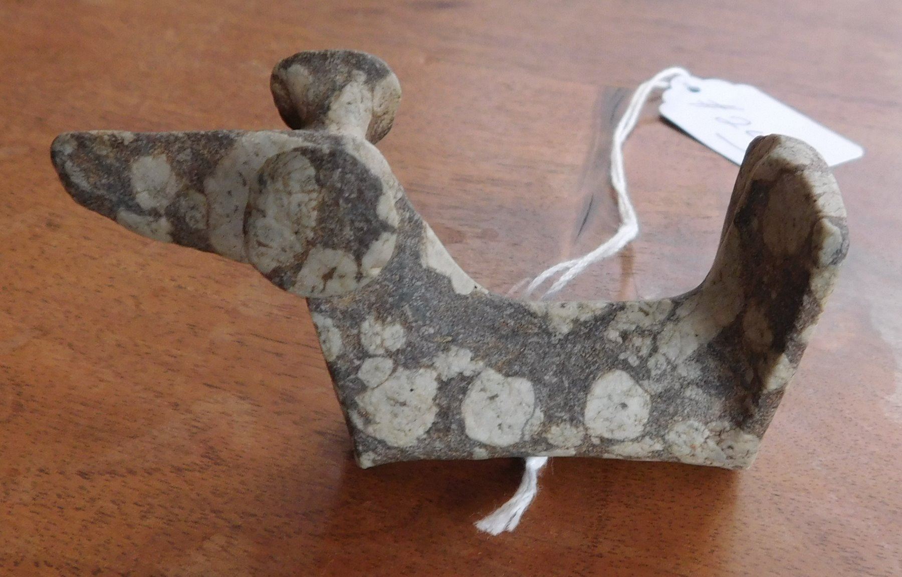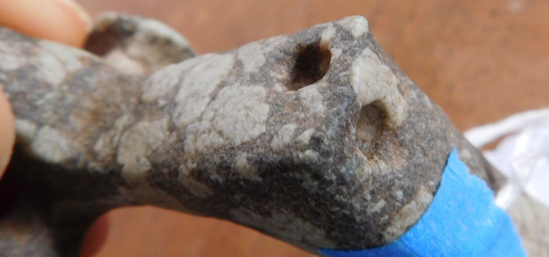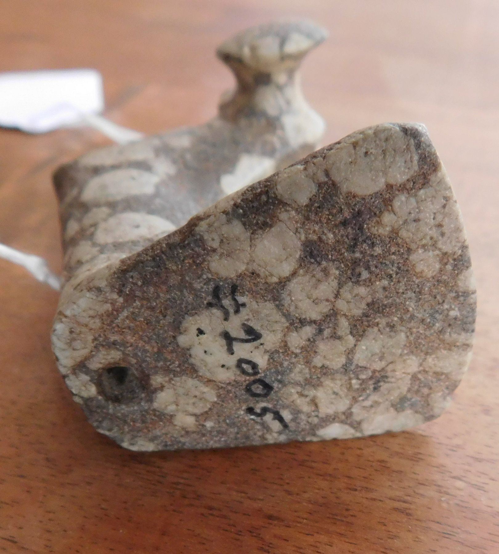 Birdstone, pre-historic item. Made of granite porphyry, the item measures 3 1/4" x 1 3/8" x 1 1/2". Ashe County, North Carolina. From an old, 1960s California collection. Condition: Good, minor wear, see images. Shipping: $16.50 w/insurance and signature, due to value.