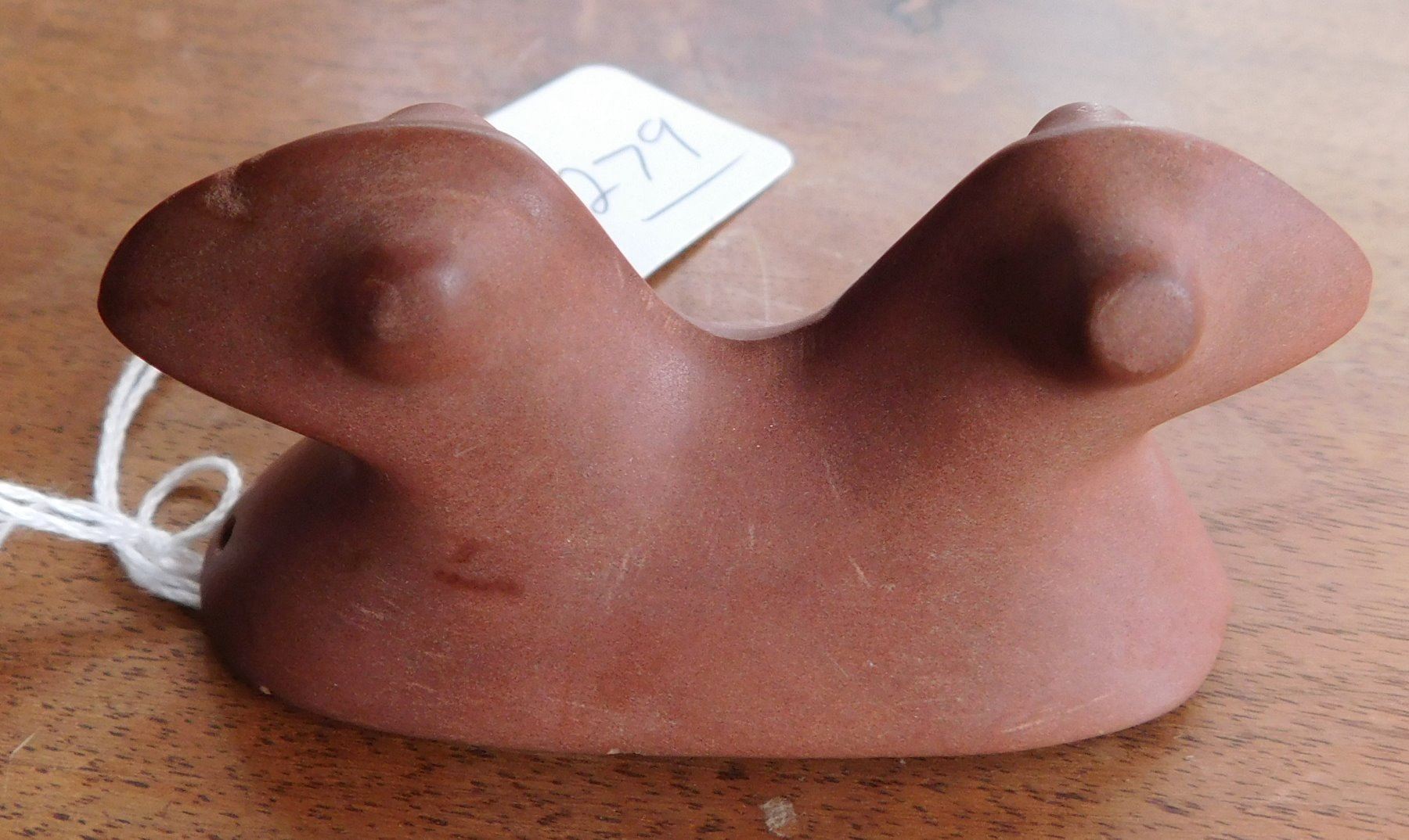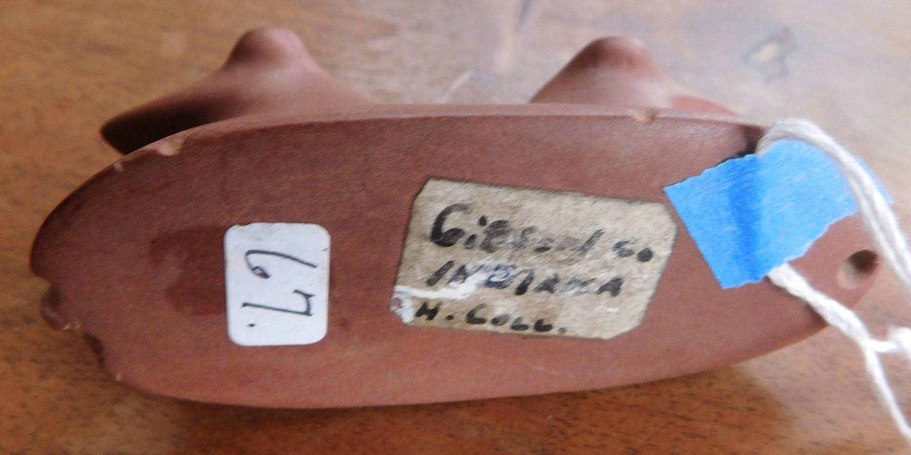 Birdstone, pre-historic item. Made of red quartz, the item measures 3" x 1 1/4" x 1 5/8". Randolph County, Indiana. From an old, 1960s California collection. Condition: Good, minor nicks, see images. Shipping: $15.50 w/insurance and signature, due to value.