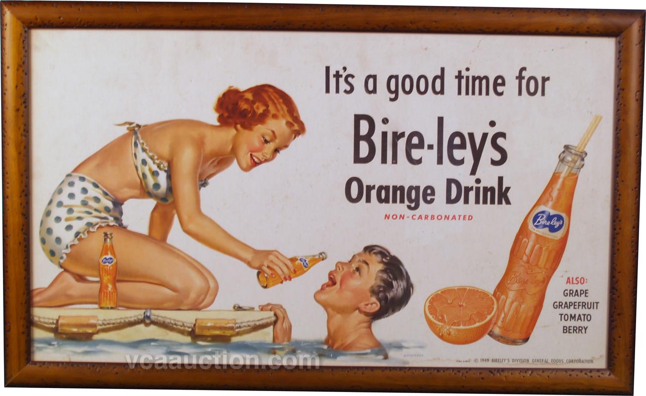 Bire-ley's Orange Drink Cardboard Sign In Frame - 36" x 22"
