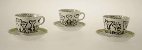 Birger Kaipiainen Arabia 3 tekoppar med fat signerade Kaipiainen
