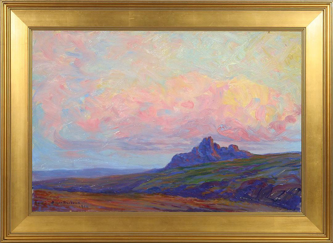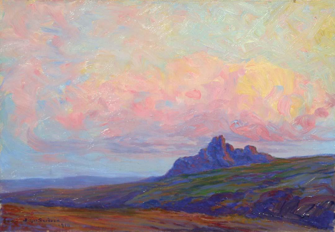 Birger Sandzén (1871-1954). Approaching Storm. 18” x 26” oil on canvas. Executed 1910. Signed and dated lower left. Shows some craquelure overall. (est $20,000-30,000) The beautiful “sunset” colors in this painting show Professor Sandzén’s emerging rich palette, while the texture is still smooth. Provenance: Bethany College, Lindsborg, KS. For condition reports please visit: www.auctioninsantafe.com/cr2011.pdf