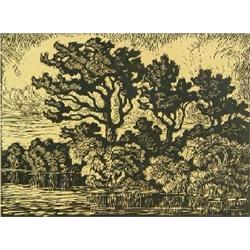 Birger Sandzen (1871-1954) (Kansas) Linocut, "Willow And Cottonwood," 1931, 8 7/8" x 12", pencil signed lower right, Est $350 - $500