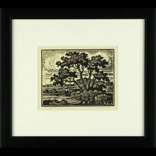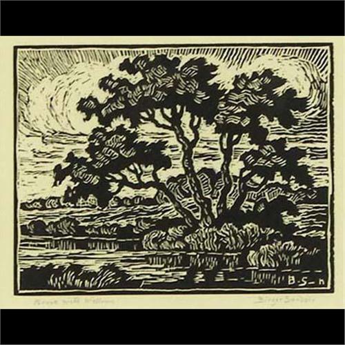 Birger Sandzen (1871-1954) (Kansas) Broadmoor Art Academy Member, Linoleum Cut, "Brook with Willows", 6" x 7 ¾", pencil signed, (alternately named "Pond with Willows")