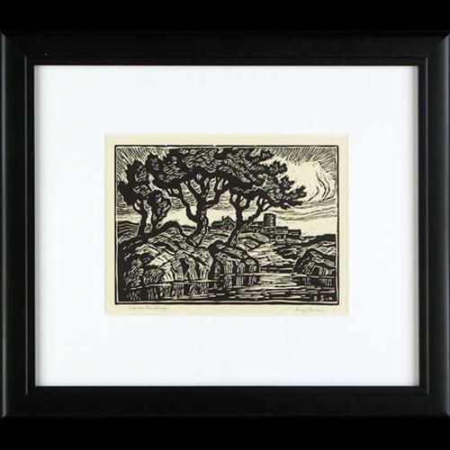 Birger Sandzen (1871-1954) (Kansas) Broadmoor Art Academy Member, Linoleum Cut, "Kansas Landscape", 1935, 6 3/8" x 9", pencil signed