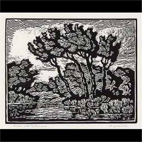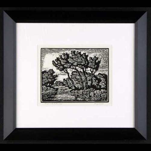 Birger Sandzen (1871-1954) (Kansas) Broadmoor Art Academy Member, Linoleum Cut, "Brook with Cottonwoods", 7" x 8 7/8", pencil signed